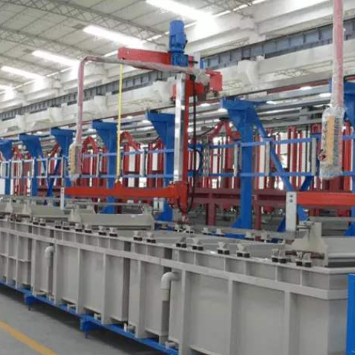電鍍處理過程中所用的設備(bèi)主要(yào)有各類固定槽、滾鍍槽、掛具、吊籃等。鍍(dù)後處理是對零件進行拋光、出光、鈍(dùn)化、著色、幹燥、封閉、去氫等工作,龍門式掛鍍生產線,根據需要選用其中一(yī)種或數種工序(xù)使零件符合(hé)質量要求。鍍後處理常用設備主要有磨、拋光(guāng)機,各類固定槽。