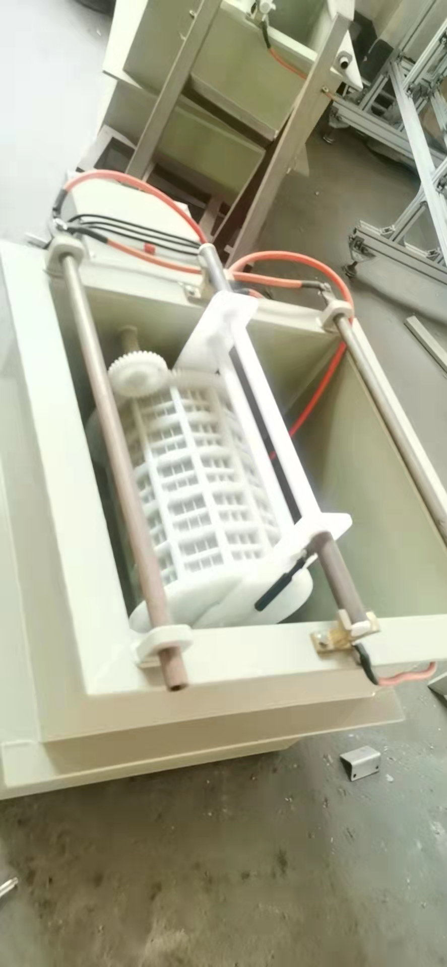 ②也可做成傳動部分在藥水缸外麵, 轉動滾(gǔn)筒放在缸內;此種製作一般承較重的情況下可以(yǐ)設計.