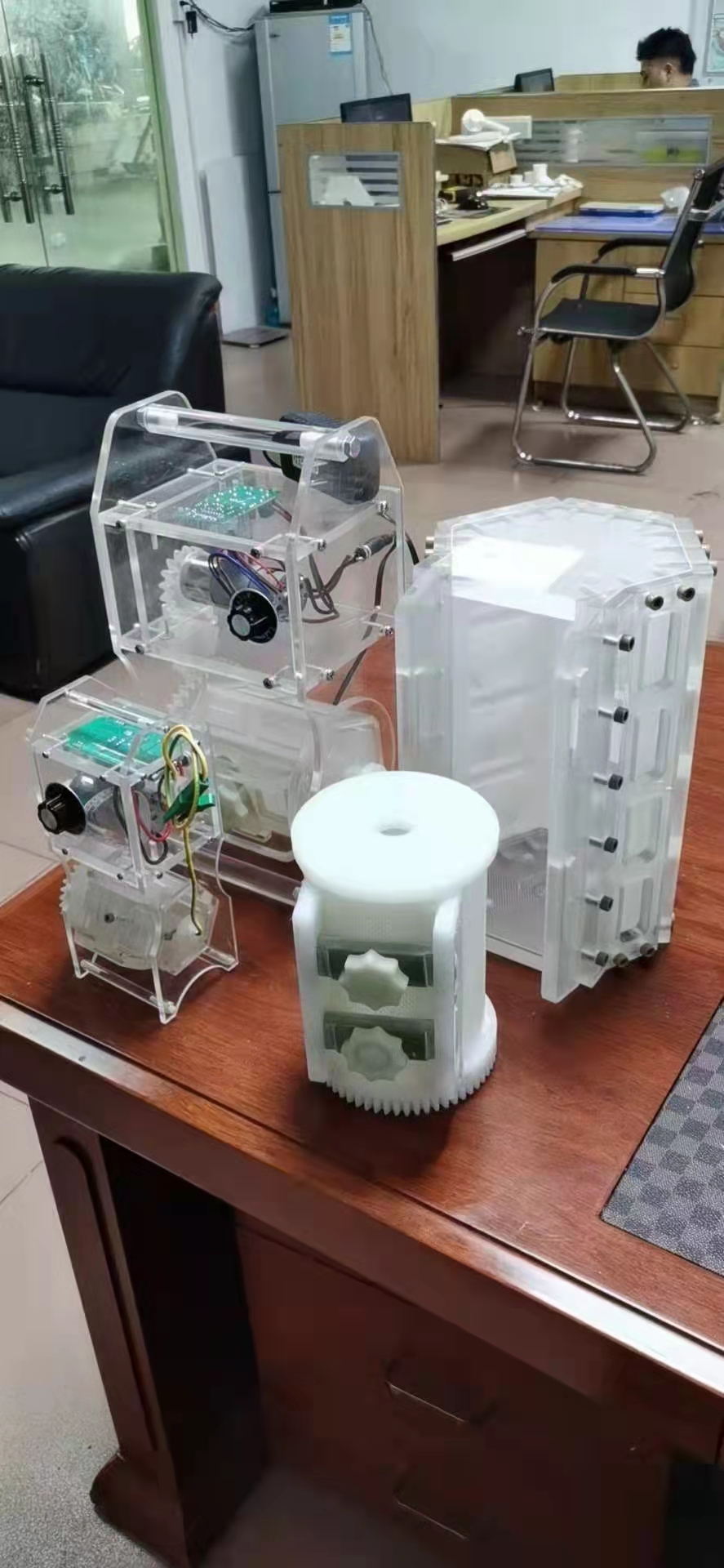 ②也可做成(chéng)傳動部分在藥水缸外麵, 轉動滾筒放在缸(gāng)內;此種製作(zuò)一般承較重的(de)情況下(xià)可以設計.