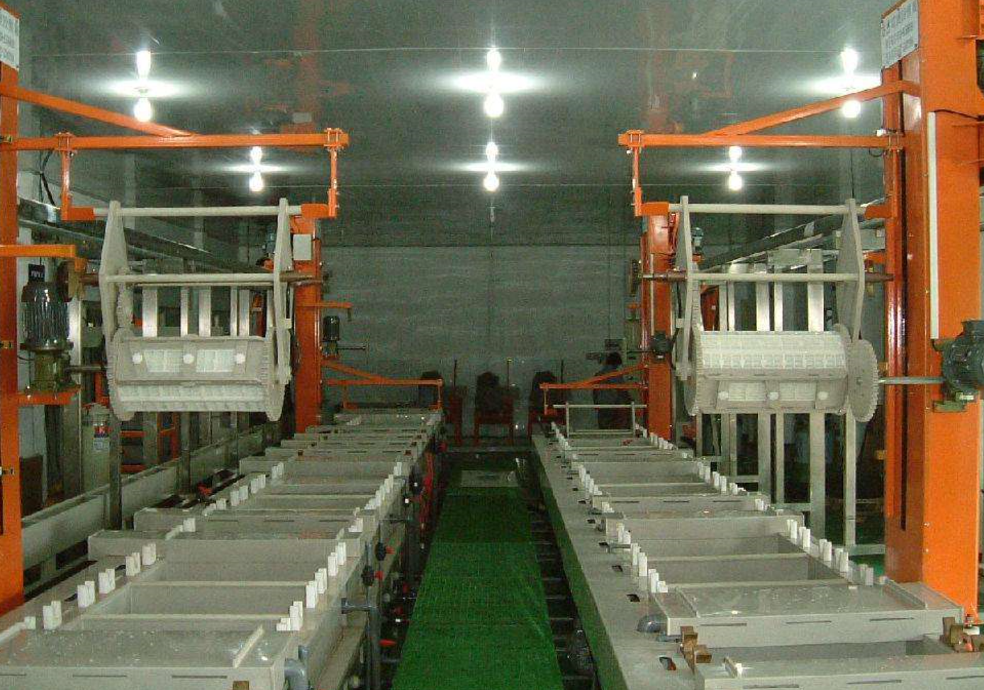 電鍍處理過程中所用的設備主要有各類固(gù)定槽、滾鍍槽、掛具、吊(diào)籃等。鍍後處理是對零件進行拋光、出光、鈍化(huà)、著色、幹(gàn)燥、封閉、去(qù)氫等工作(zuò),龍門式掛鍍生產線,根(gēn)據需要選用其(qí)中一種或數種工序使零件符合質量要求。鍍後處理常用設(shè)備主要有磨、拋光機,各類固定槽(cáo)。