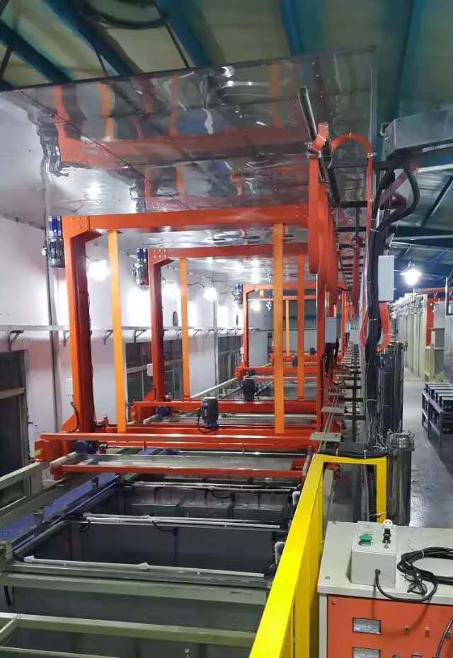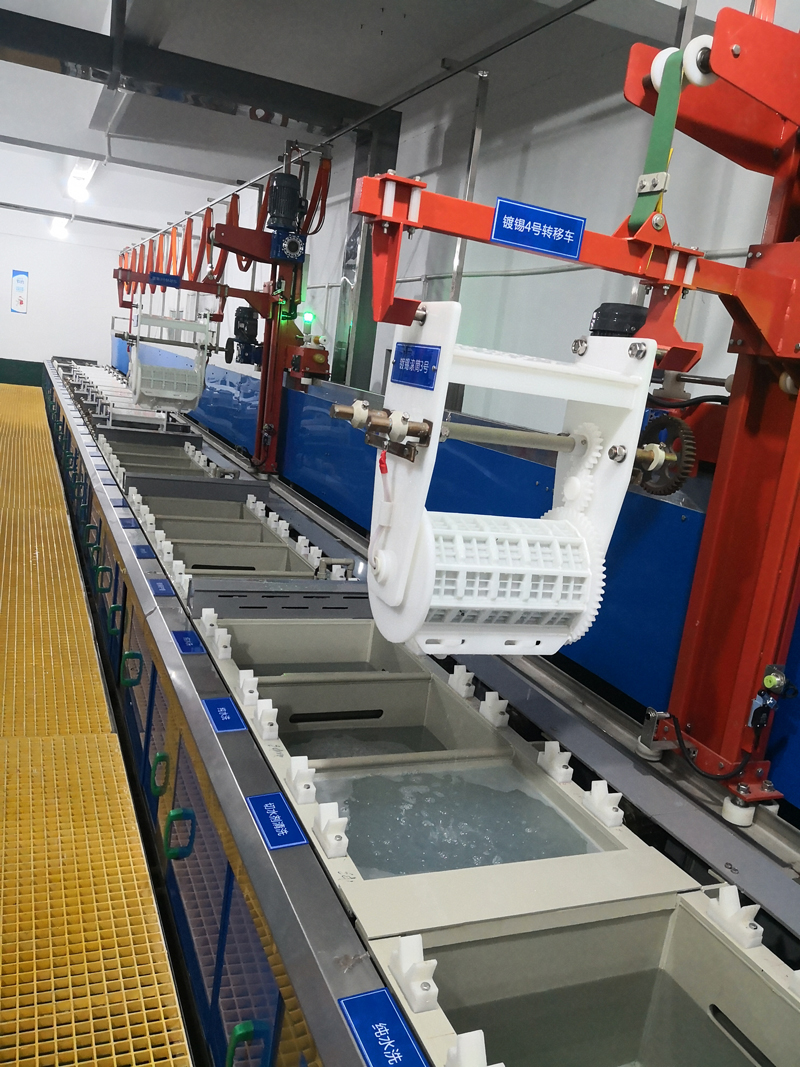 電鍍處(chù)理(lǐ)過程中所(suǒ)用的設備主要有各(gè)類固定(dìng)槽、滾鍍槽、掛具、吊籃等。鍍後處(chù)理是(shì)對零(líng)件(jiàn)進行拋光、出(chū)光、鈍化、著色、幹燥、封閉、去氫等工作,龍門(mén)式掛鍍生產線,根據需要(yào)選用其中一種或數種工(gōng)序使零件符合質量要求。鍍後處理常用(yòng)設備主要有磨、拋光機,各類固定(dìng)槽。