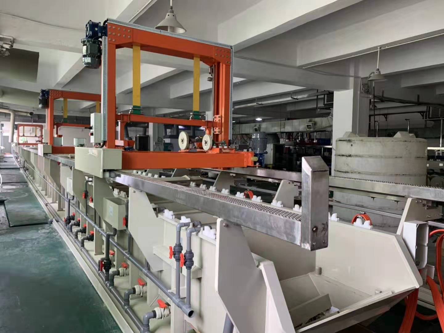 電鍍處理過程中所(suǒ)用的設備主要有各類固(gù)定(dìng)槽、滾鍍槽、掛具、吊籃等。鍍後處理(lǐ)是對零件進行拋光、出光、鈍化、著色、幹(gàn)燥、封閉、去氫等(děng)工作,龍門式掛鍍生(shēng)產線(xiàn),根據需要選用其(qí)中一種或(huò)數種工序使(shǐ)零件符合質量要(yào)求。鍍後處理常用設(shè)備主要有磨、拋光(guāng)機(jī),各類固定槽。