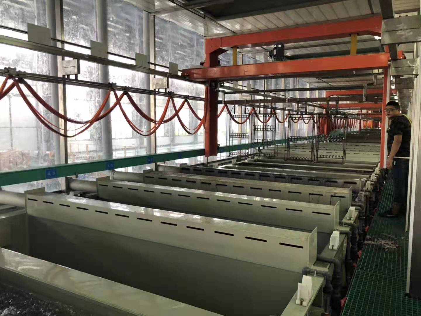 電鍍處理過程中所用的設備主要有各類固定槽(cáo)、滾鍍槽、掛(guà)具、吊(diào)籃等。鍍後處(chù)理是對零件進行拋光(guāng)、出光、鈍化、著色、幹(gàn)燥、封閉、去氫等工作,龍門式掛鍍生產線,根據(jù)需要選用(yòng)其中一種或(huò)數種工序使零件符合質量要求。鍍後處理常(cháng)用設備主要有磨、拋光機(jī),各類固定槽。